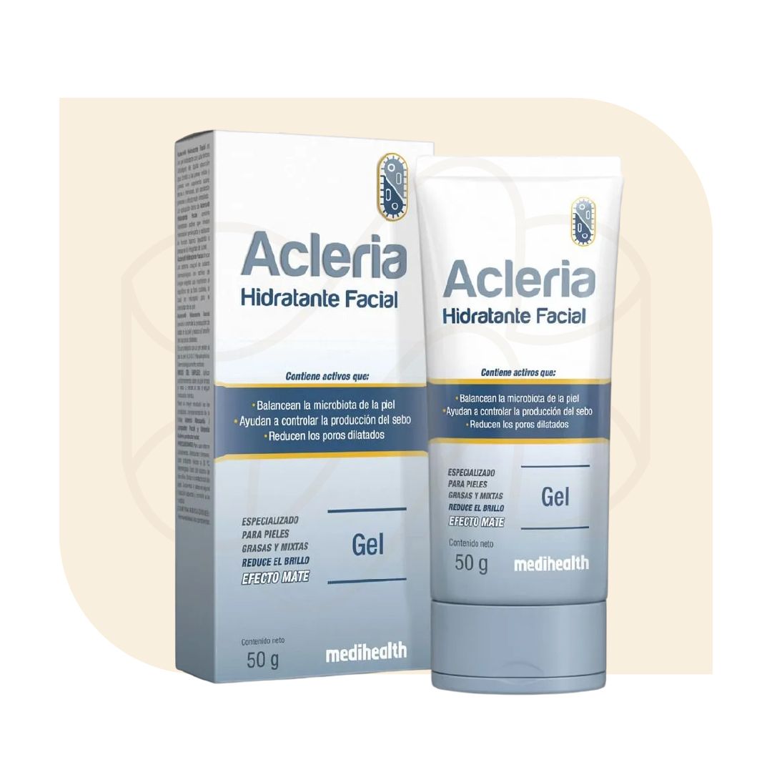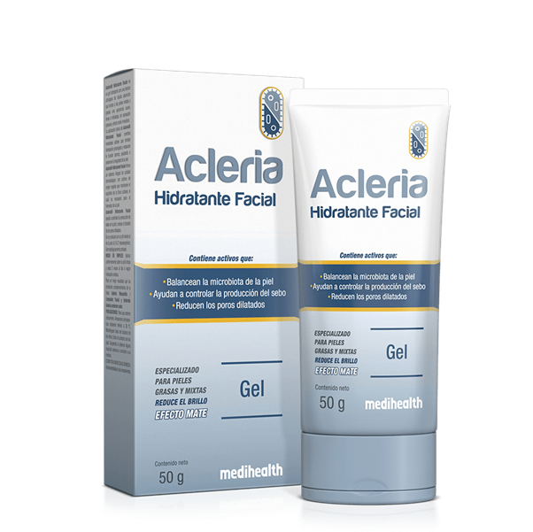 Acleria Hidratante Facial es un gel hidratante con una textura ultraligera de rápida absorción que brinda a las pieles mixtas, grasas y con imperfecciones, una apariencia suave, tersa e hidratada, sin sensación grasosa y efecto mate inmediato.